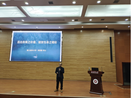 为带领员工理解自我价值、感悟生命的意义,威廉体育官方网站于2023年11月27日晚上7点在人文楼道德讲堂开展了“人文大讲堂”主题系列讲座第七期——《活出自我之价值,绽放生命之精彩》。本次讲座由威廉体育官方网站主办,威廉体育官方网站团委员工会承办,威廉体育官方网站肖前国博士主讲,应用心理学教研室副主任刘志军博士主持。