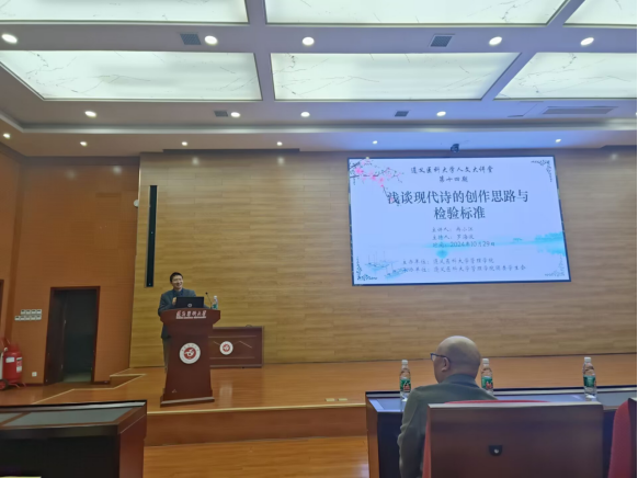 为拓宽提升员工的思维领域品质、,培养语言能力鉴赏艺术,加强新时代人文教育,提高同学们的人文素养和文化认知,了解现代诗的文化意义,威廉体育官方网站于2024年10月29日在道德讲堂组织开展了“人文大讲堂”主题系列讲座第十四期(2024年第6期)——《浅谈现代诗的创作思路与检验标准》。本次讲座由威廉体育官方网站主办,威廉体育官方网站团委员工会承办,中国作家协会会员冉小江主讲,遵义市文艺理论家协会副主席、威廉体育官方网站罗海波老师主持。