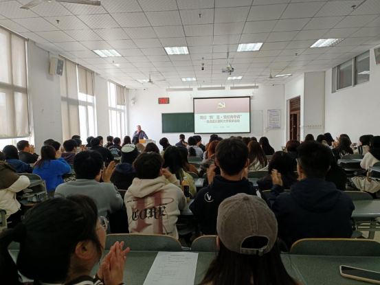 活动伊始,张文辉书记首先进行开场致辞。他强调了此次宣讲活动的重要意义,指出青年是国家的未来和希望,青年思想的引领对于国家发展至关重要。随后,张书记向在场师生隆重介绍了两位来自省委党校的宣讲员赵栋和李瀛昱副教授,对他们的到来表示热烈欢迎和衷心感谢。